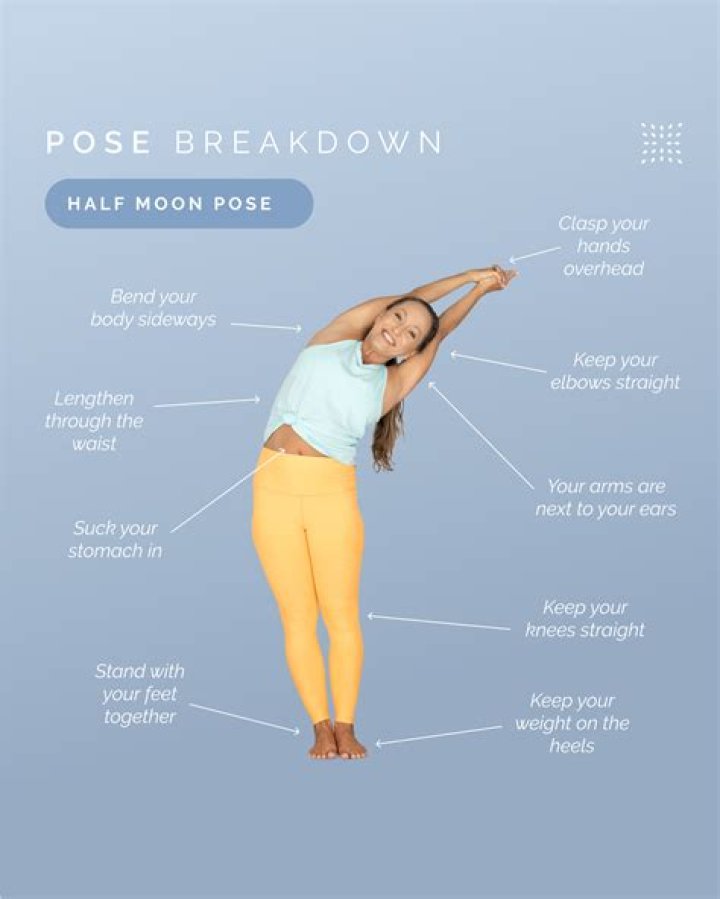 How to Do Half Moon Pose (Ardha Chandrasana) in Yoga Benefits. This move strengthens the ankles and thighs, stretches the hamstrings. Step-by-Step Instructions. Begin in Triangle Pose ( trikonasana) with the right leg forward. Common Mistakes. Avoid having your chest rotate toward the floor. Modifications and Variations. Need a Modification? Safety and Precautions. Try It Out