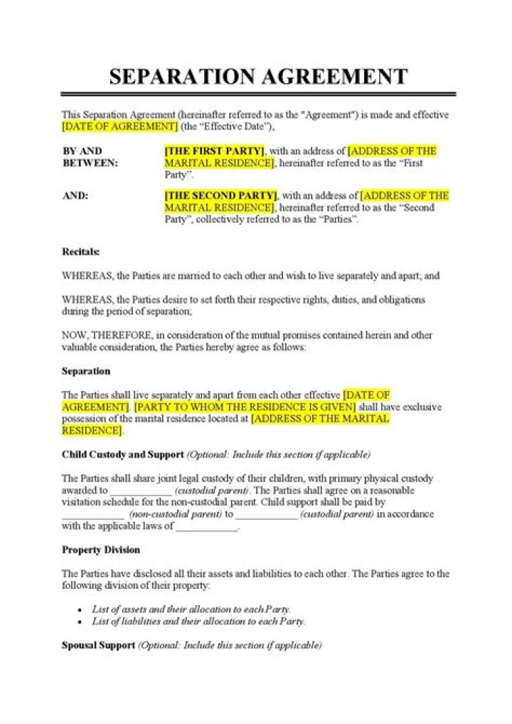 How do I write a separation agreement?